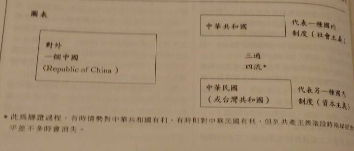 不過,在國際經、貿舞台上,我們仍然能會有很大的空間,是可以預期的。換句話說,在此脈絡(context)下,我們成為所謂的「國中之國」,也就是正好符合中共的「一國兩制」或「誰都不吃掉誰的」這種意識型態,又即使中華民國改頭換面,成為「台灣共和國」,充其量也只不過是「Republic of China(中共版本)」的一個邦,位階要比香港地位和澳門地位來的高一些而已(因為台灣地區可以有軍隊和其他特權)。