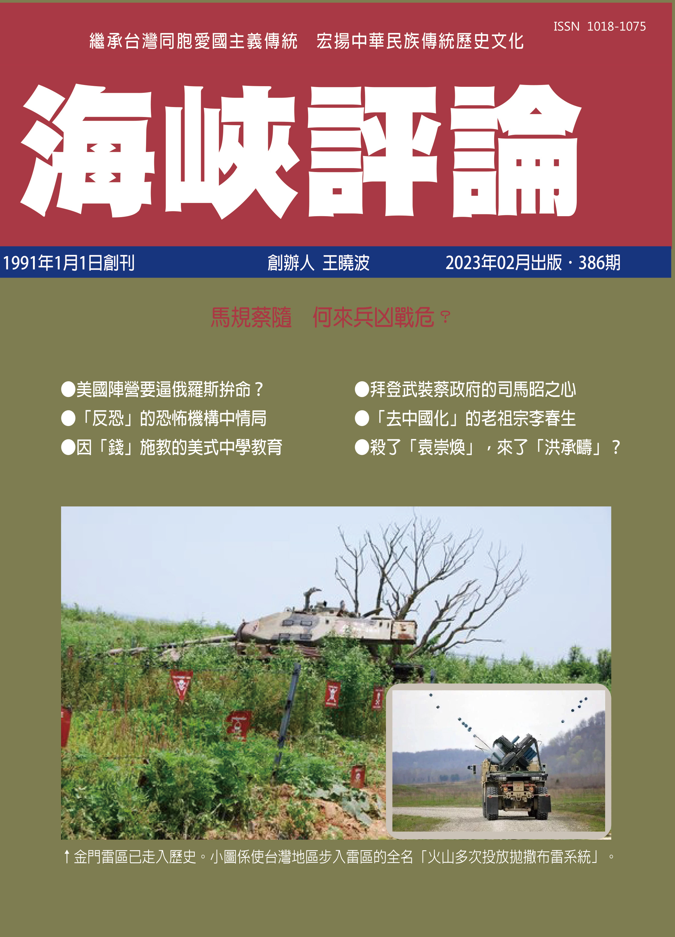 對華府的軍售,蔡英文上台以來是照單全收,既不議價,也不問何時交貨。至於「火山」布雷系統,不管是拜登政府主動強賣,還是蔡政府自行提出,無疑在宣示台灣將成為戰區,宣告蔡英文指揮下的「國軍」將開始充當華府打斷中華民族復興的棋子,要為拜登政府代表的美國統治集團而戰!拜登已在亞洲大陸西邊開闢烏克蘭戰場,擺明要在亞洲大陸東邊另闢台海新戰場,由民進黨政府進行一場代理人戰爭,阻斷中華民族的復興進程。