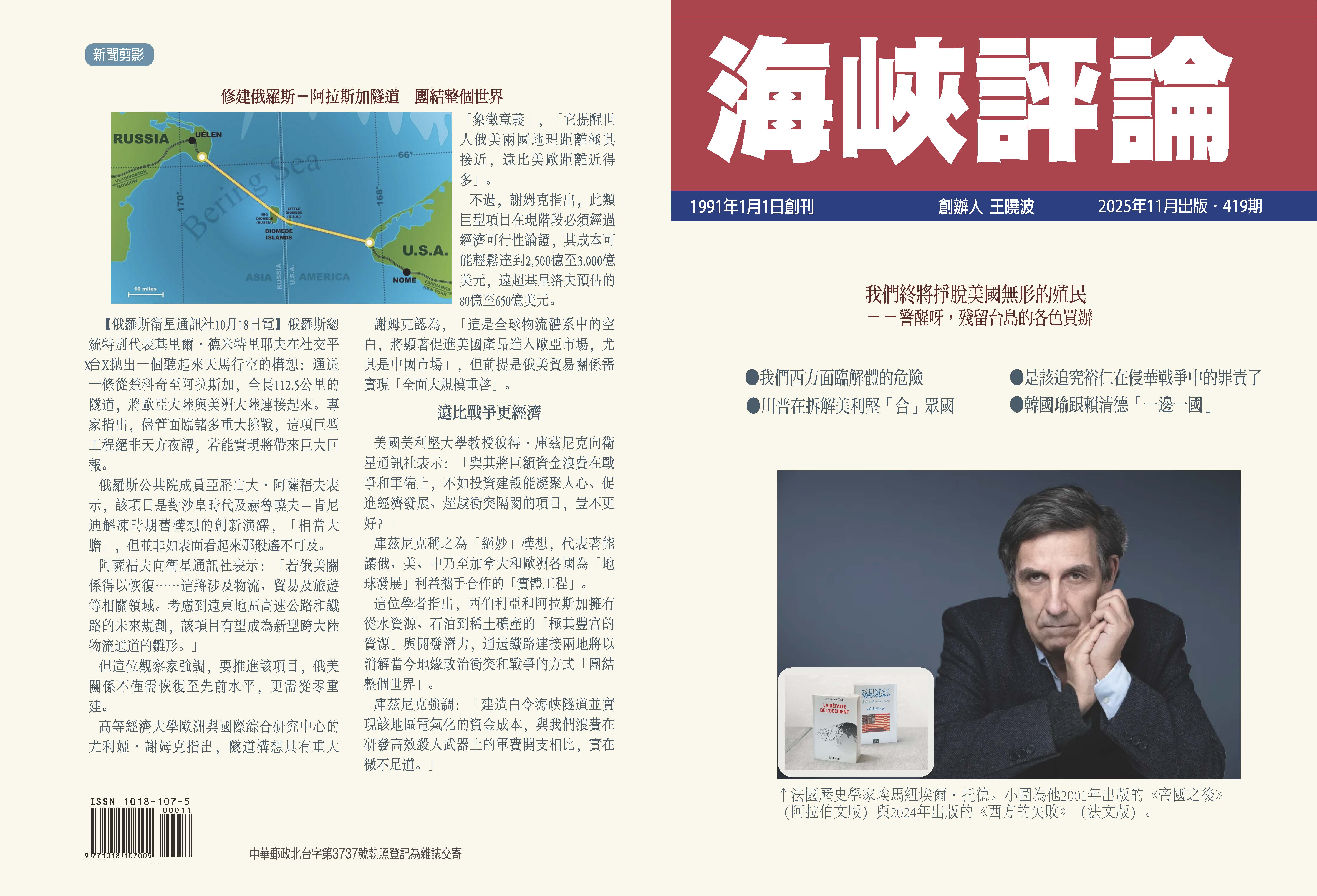 本月號,我們刊出法國學者Emmanuel Todd為其著作《西方的失敗》斯洛文尼亞版寫的序,序中說:「一方面,無論五角大廈還是白宮的領導,都知道這場戰爭輸了,非拋棄烏克蘭不可,退出是再自然不過的選項。另方面,撤出烏克蘭給帝國以致命打擊也是再自然不過的事,這也是從越南、伊拉克或阿富汗撤軍時不曾出現過的結局。這是美國戰略在全球範圍的第一次失敗,背景是美國的大規模去工業化,外加很難再工業化。」